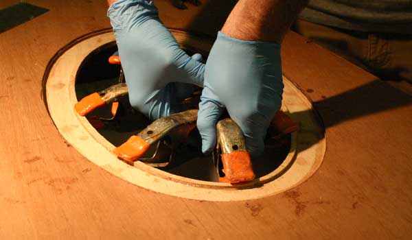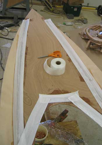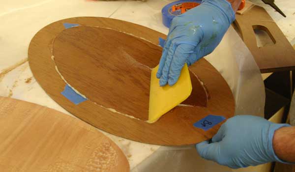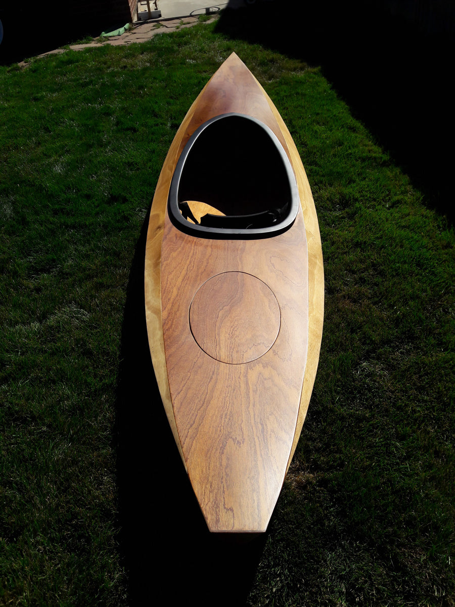 The standard kit includes BS-1088 grade okoume plywood throughout. This is a beautiful tropical wood, prized for its grain, light weight, and workability, and it’s the standard for stitch-and-glue kayak construction at Chesapeake Light Craft. One option is a sapele deck, which CLC followers will recall is standard in the Shearwater performance kayak line. Sapele is a dense, strong west African species with an attractive reddish grain figure.